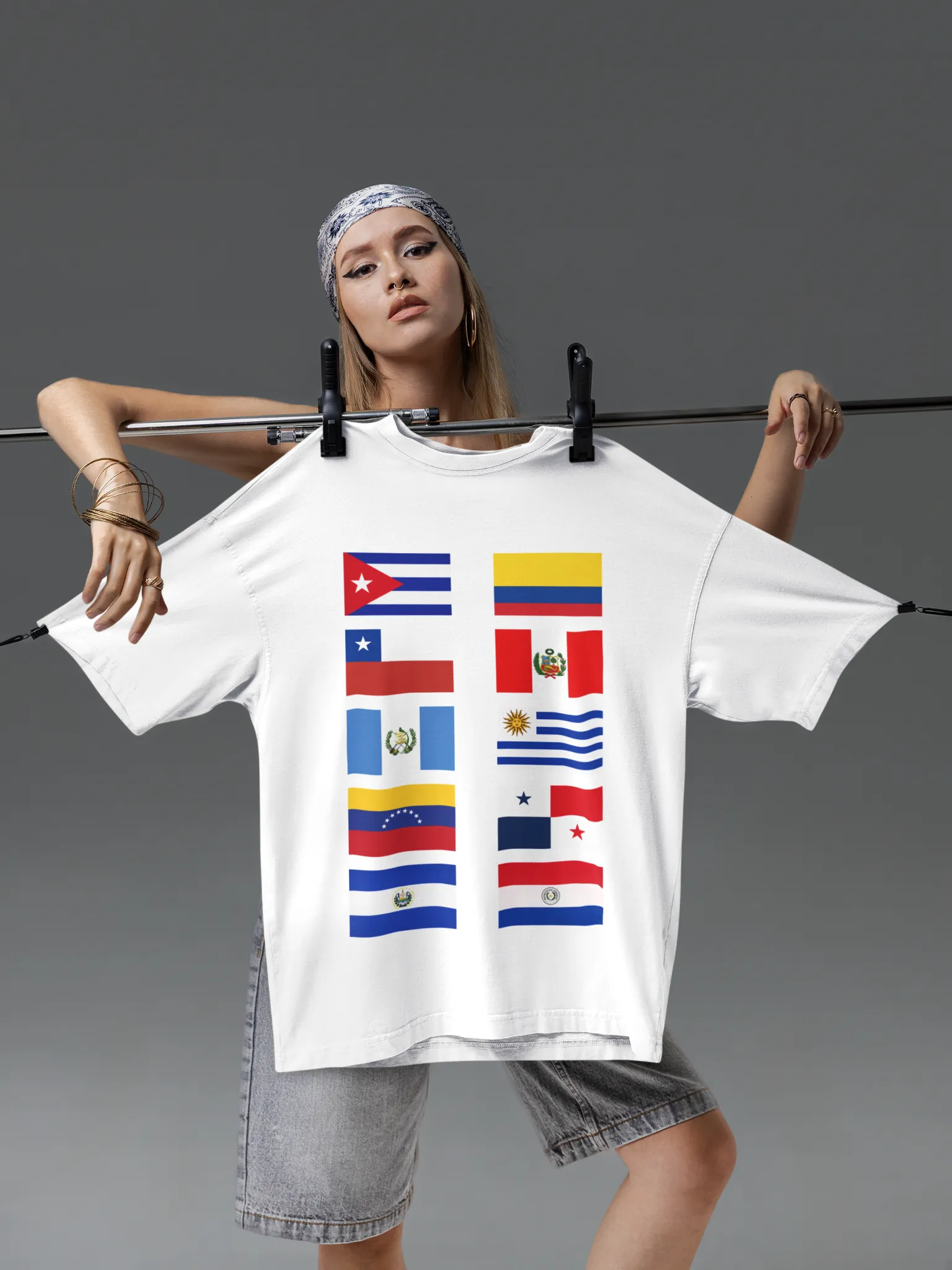 Su diseño de banderas latinoamericanas representa unión, orgullo y fuerza cultural.